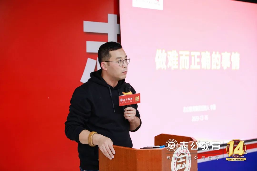 16日上午9點(diǎn)許,董事長李勇發(fā)表致辭,他認(rèn)為:“聚焦是一種力量”,對(duì)于志公教育而言,聚焦就是專注廣西公考輔導(dǎo)。