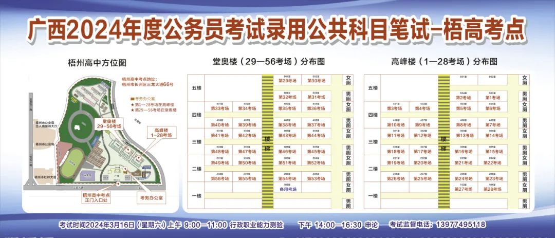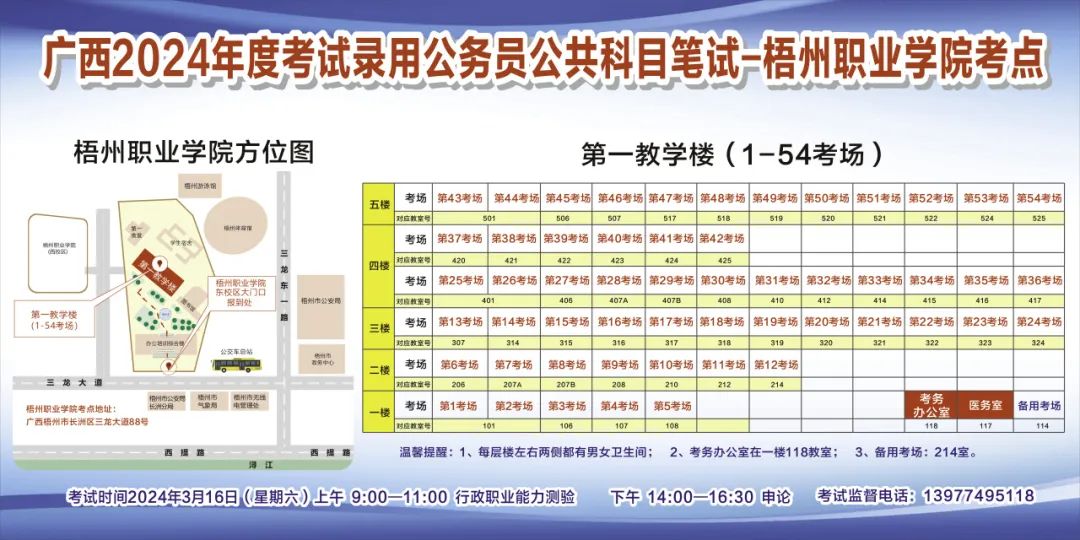 廣西2024年度考試錄用公務(wù)員選調(diào)生)公共科目筆試梧州考點指引