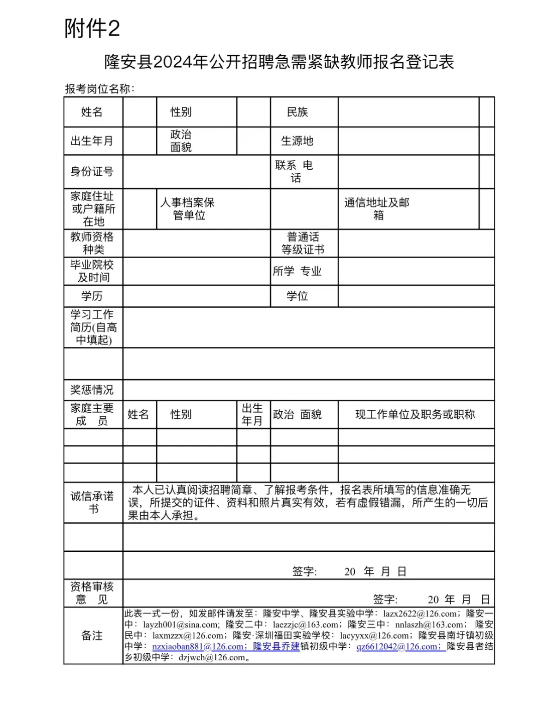(1)“隆安縣2024年公開(kāi)招聘急需緊缺教師報(bào)名登記表”電子版??傻卿洀V西南寧市人力資源和社會(huì)保障局網(wǎng)站、廣西南寧市隆安縣人民政府門戶網(wǎng)站、隆安縣民族中學(xué)微信公眾號(hào)下載。