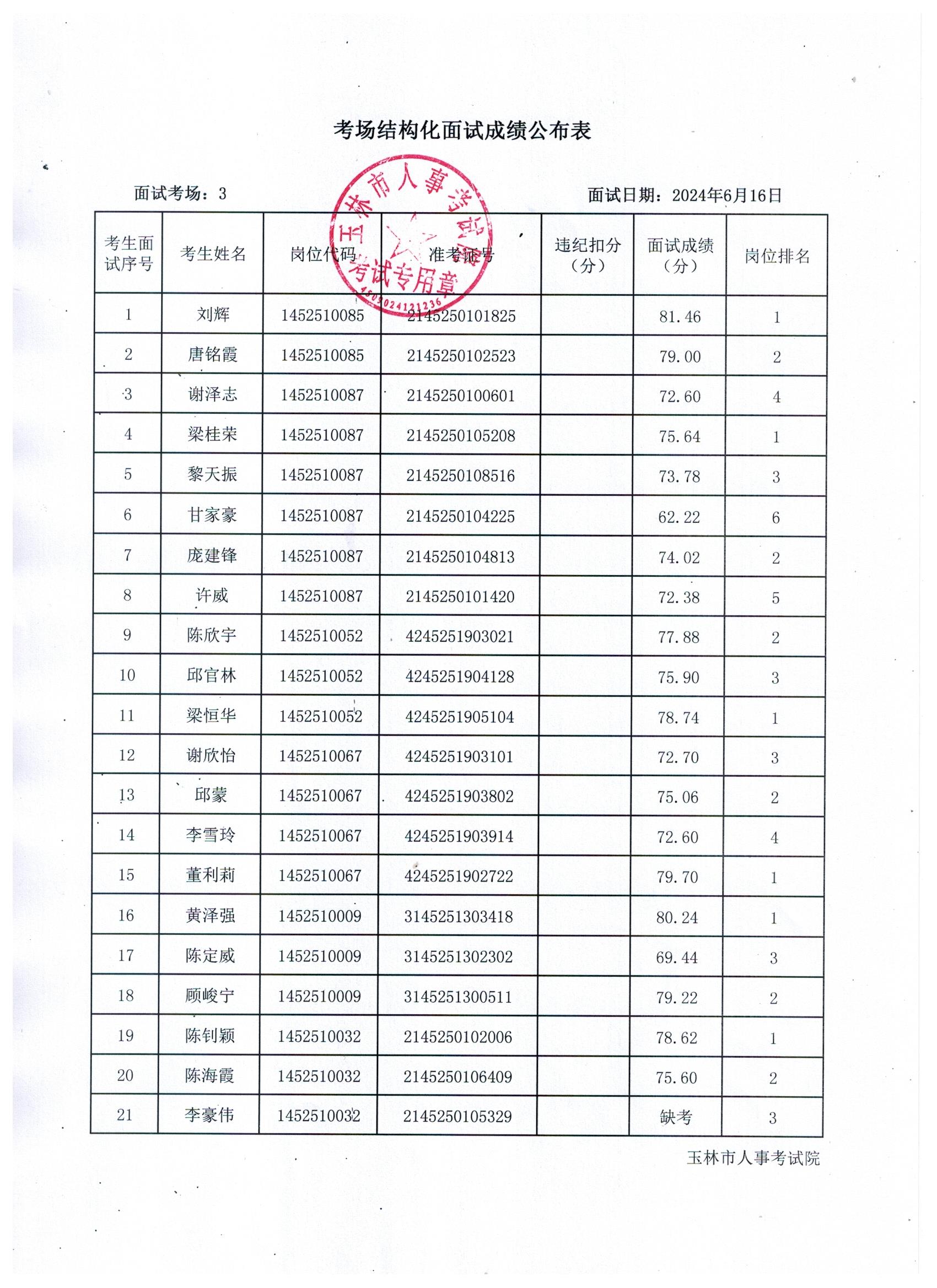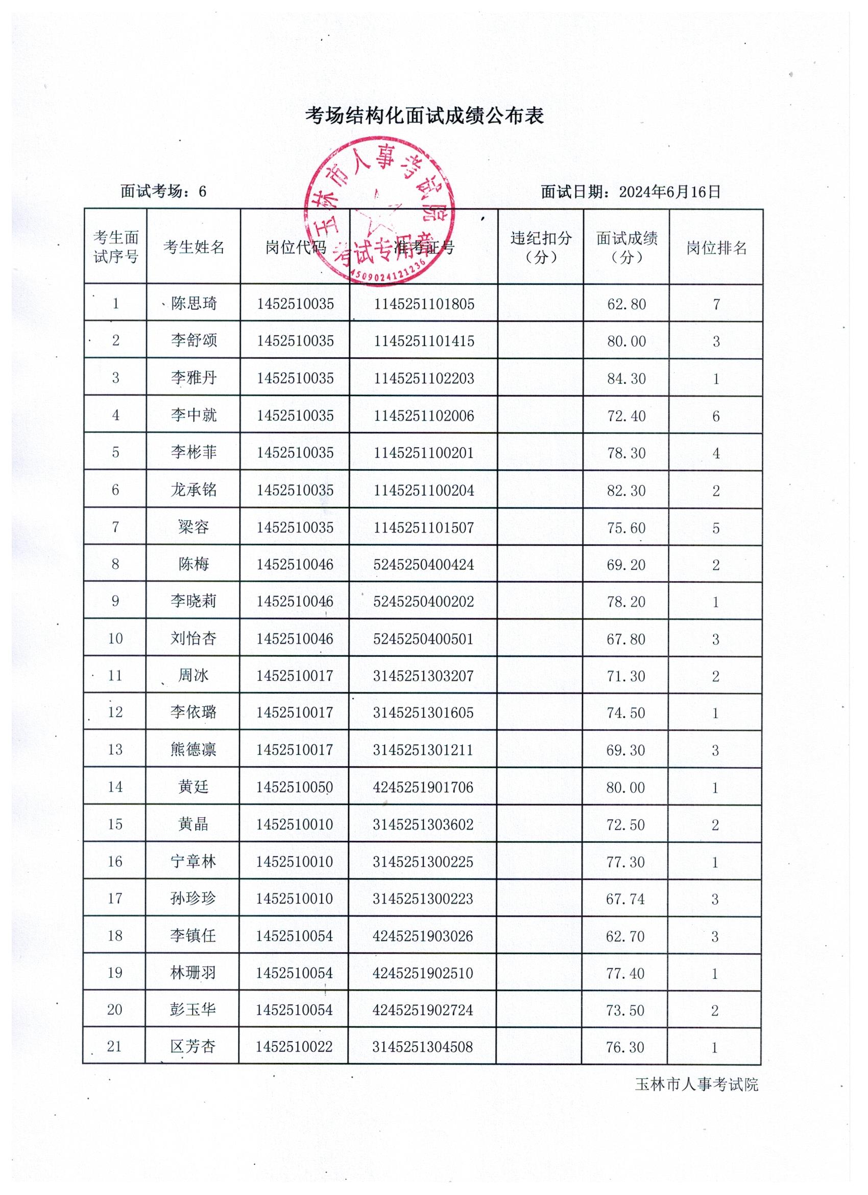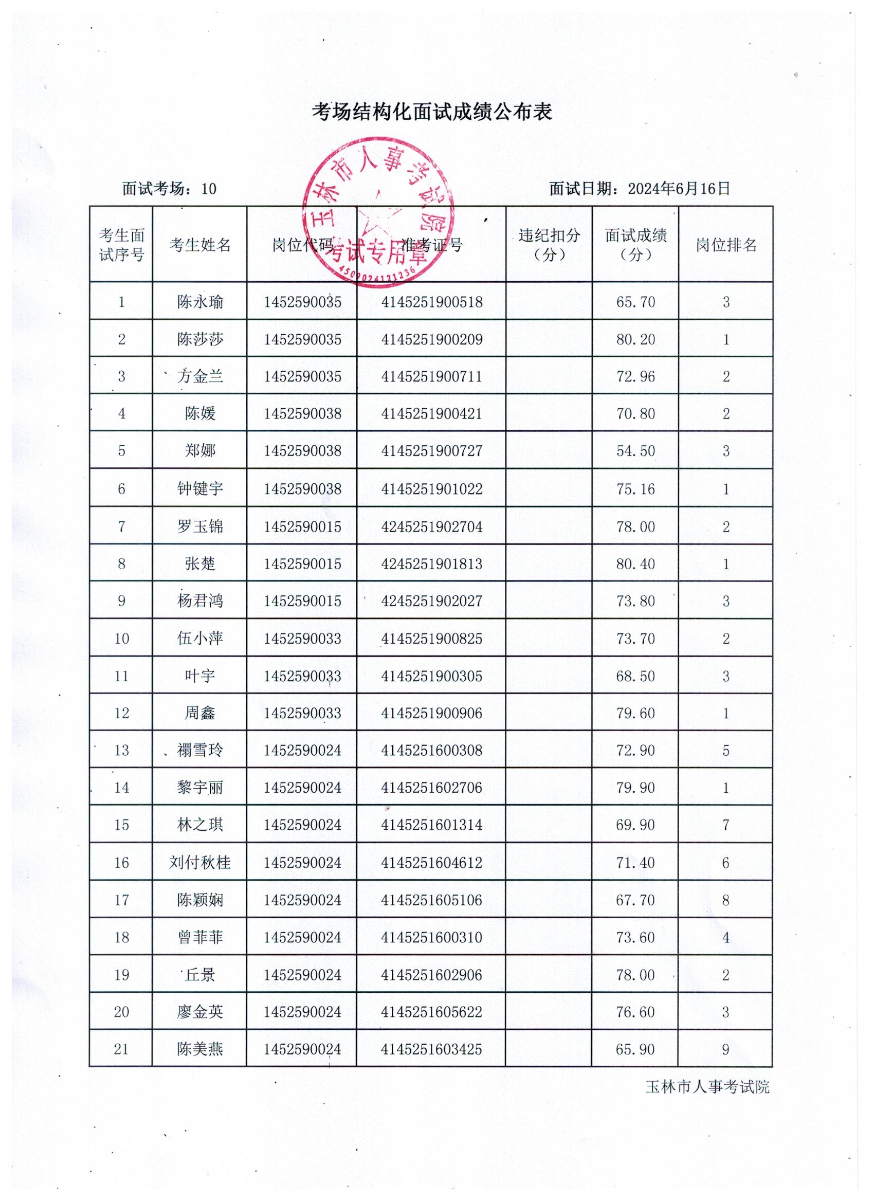 原文標(biāo)題:2024年玉林市直(含玉州區(qū)、福綿區(qū)、玉東新區(qū))事業(yè)單位公開(kāi)招聘人員面試成績(jī)公布(6月16日)