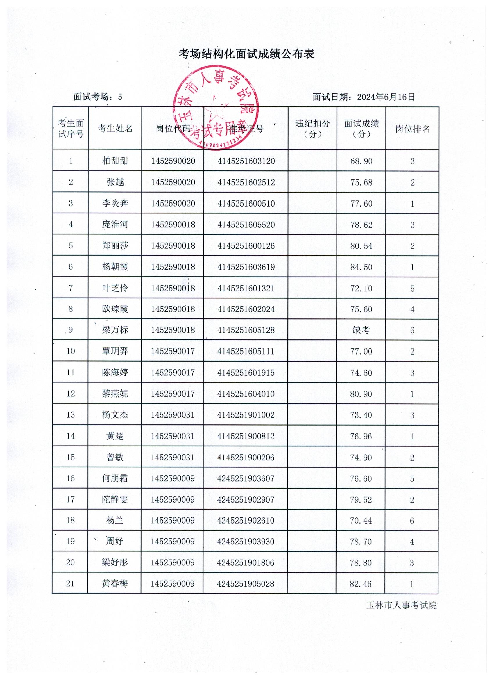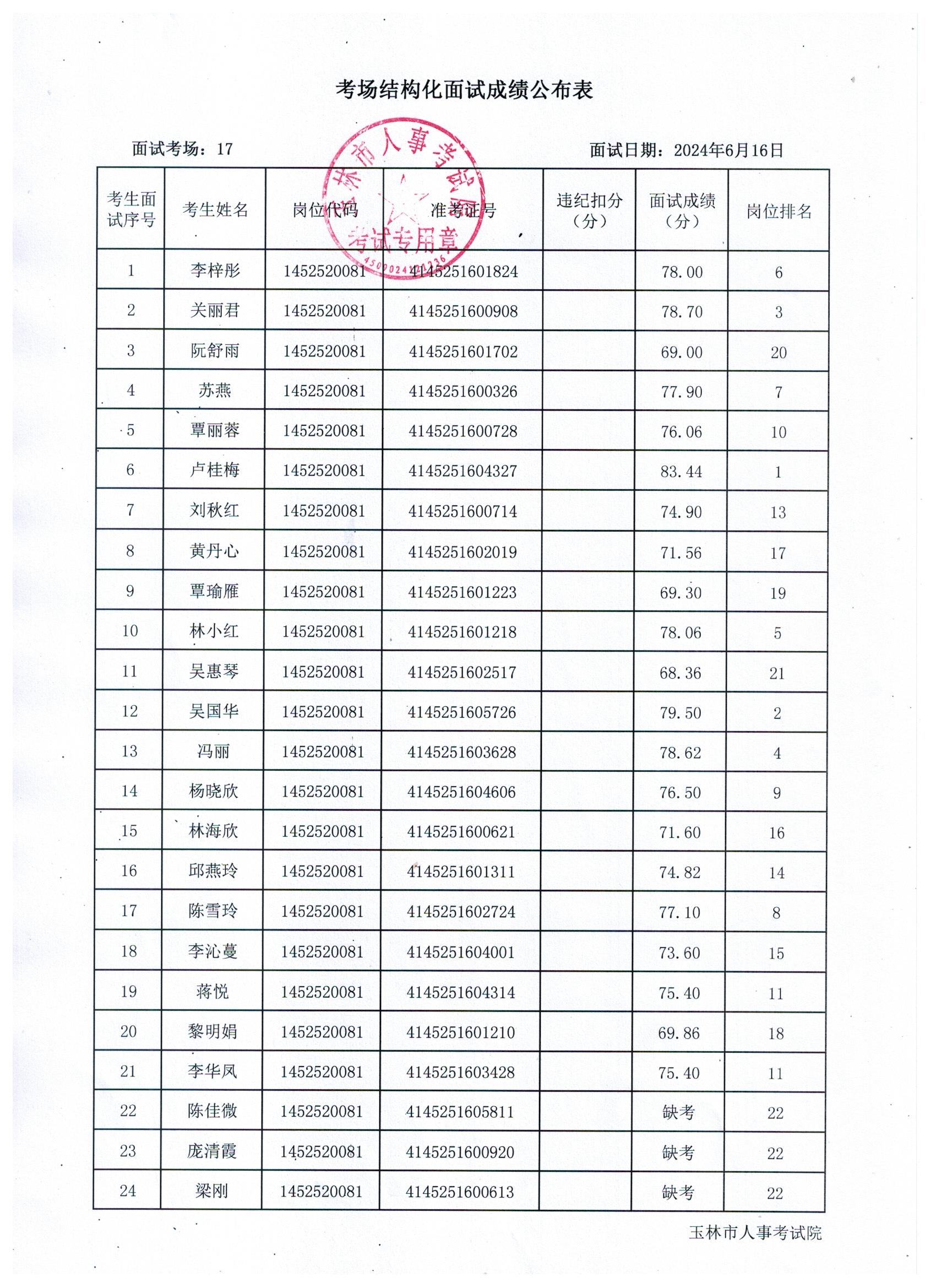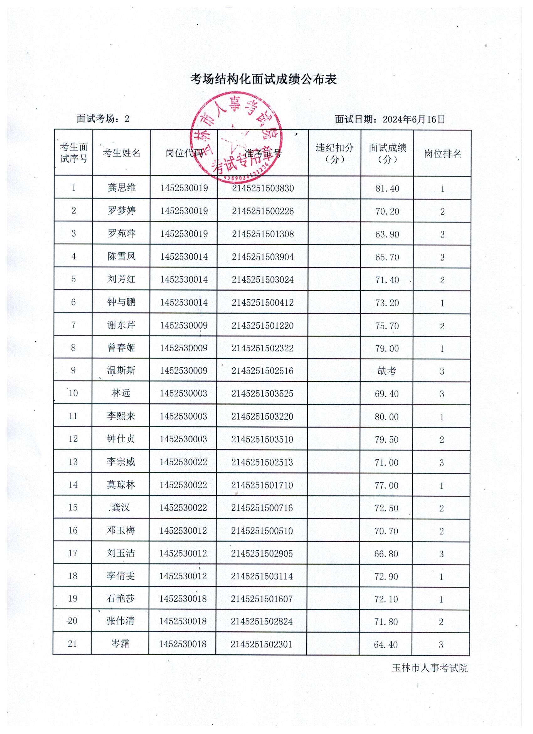 原文標(biāo)題:2024年玉林市直(含玉州區(qū)、福綿區(qū)、玉東新區(qū))事業(yè)單位公開(kāi)招聘人員面試成績(jī)公布(6月16日)