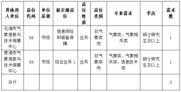 附件1.廣西氣象部門增加招聘2025年應(yīng)屆畢業(yè)生筆試崗位需求信息明細(xì)表.xlsx