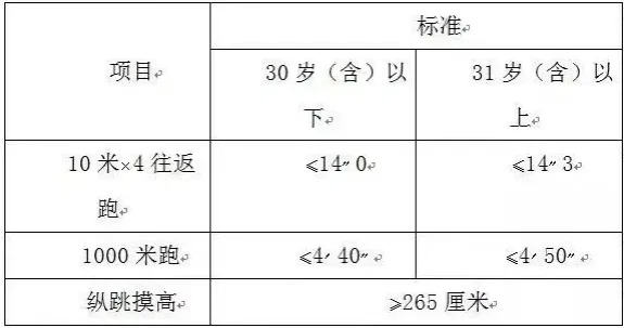 參照《關(guān)于印發(fā)公安機關(guān)錄用人民警察體能測評項目和標(biāo)準(zhǔn)(暫行)的通知》(人社部發(fā)〔2011〕48號)的項目及測試規(guī)則,結(jié)合《公安民警體育鍛煉達標(biāo)手冊》成績標(biāo)準(zhǔn),本次體能測評的項目和標(biāo)準(zhǔn)如下: