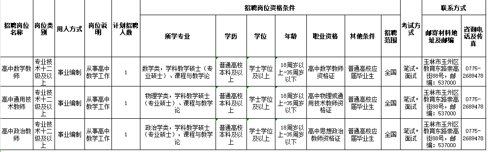 具體招聘信息請(qǐng)瀏覽玉林市人社局網(wǎng)站相關(guān)公告,以《2024年秋季期玉林市教育局直屬學(xué)校赴廣西師范大學(xué)公開(kāi)招聘教師公告》為準(zhǔn)。