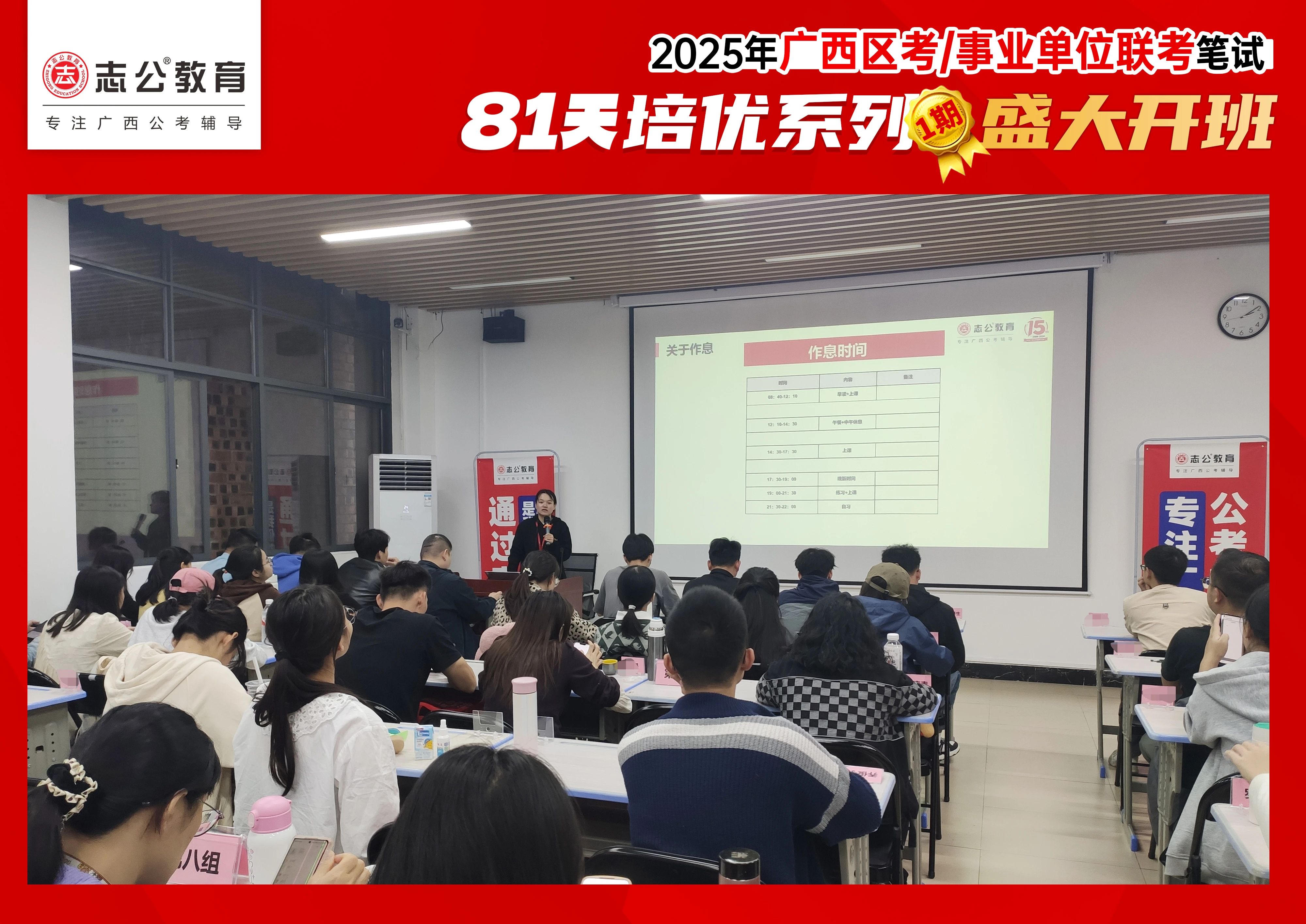 專屬于廣西考公人2025上岸直通車啟程,志公教育2025年81天1期基地訓練營12月3日盛大開班,讓我們一起來到南寧志公全封閉學習基地現(xiàn)場,感受本次81天班的火爆開營的盛大場面!
