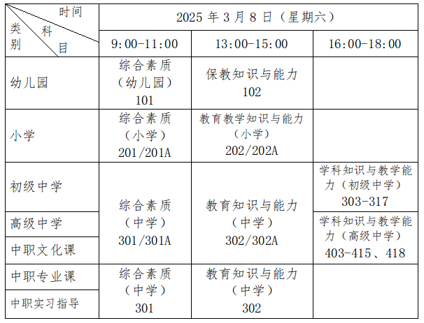 3.報考中職專業(yè)課和中職實習(xí)指導(dǎo)教師資格的考生,筆試考2個公共科目,科目代碼分別為301、302。