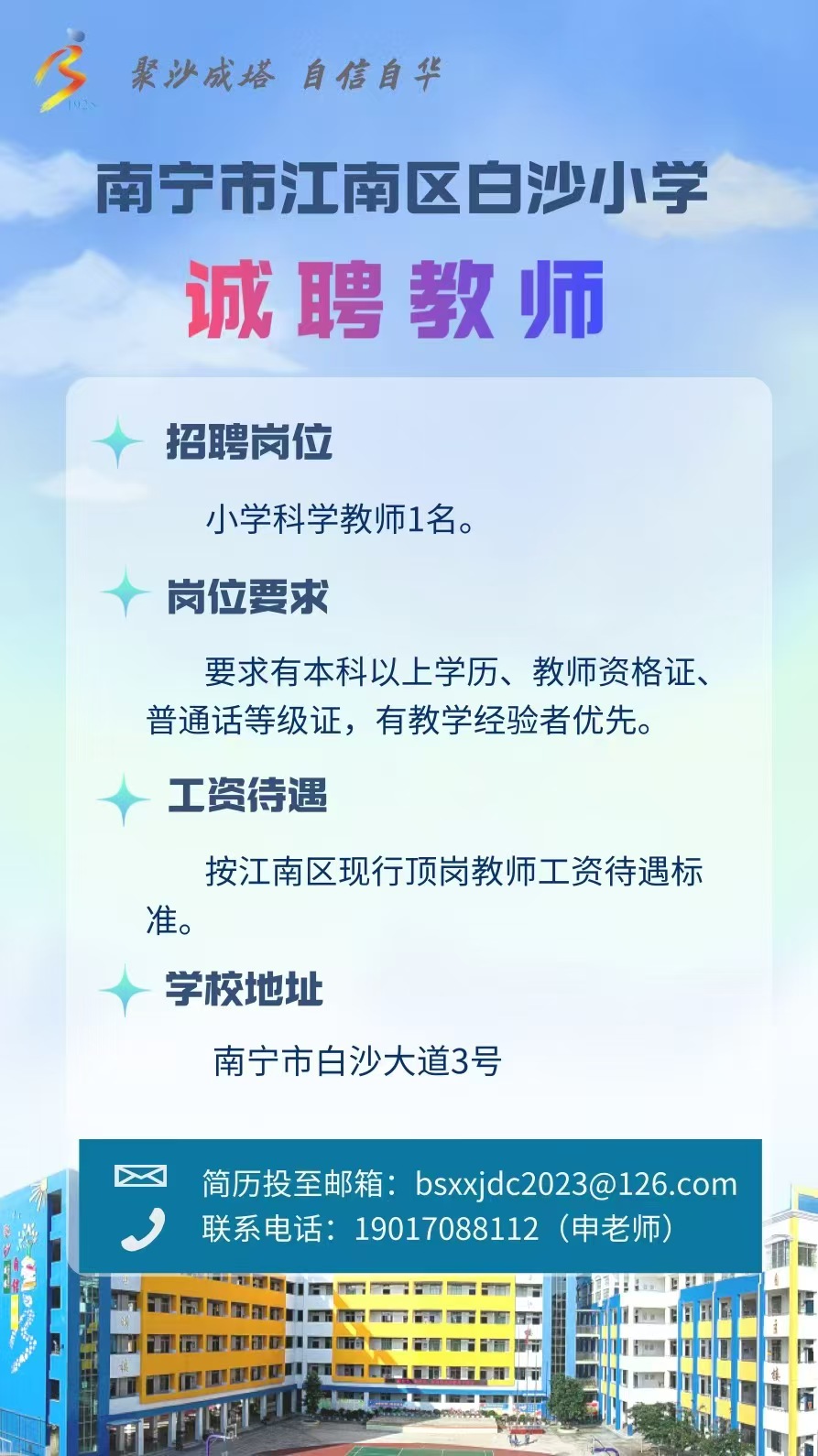 2025年南寧市江南區(qū)白沙小學(xué)誠(chéng)聘教師1人