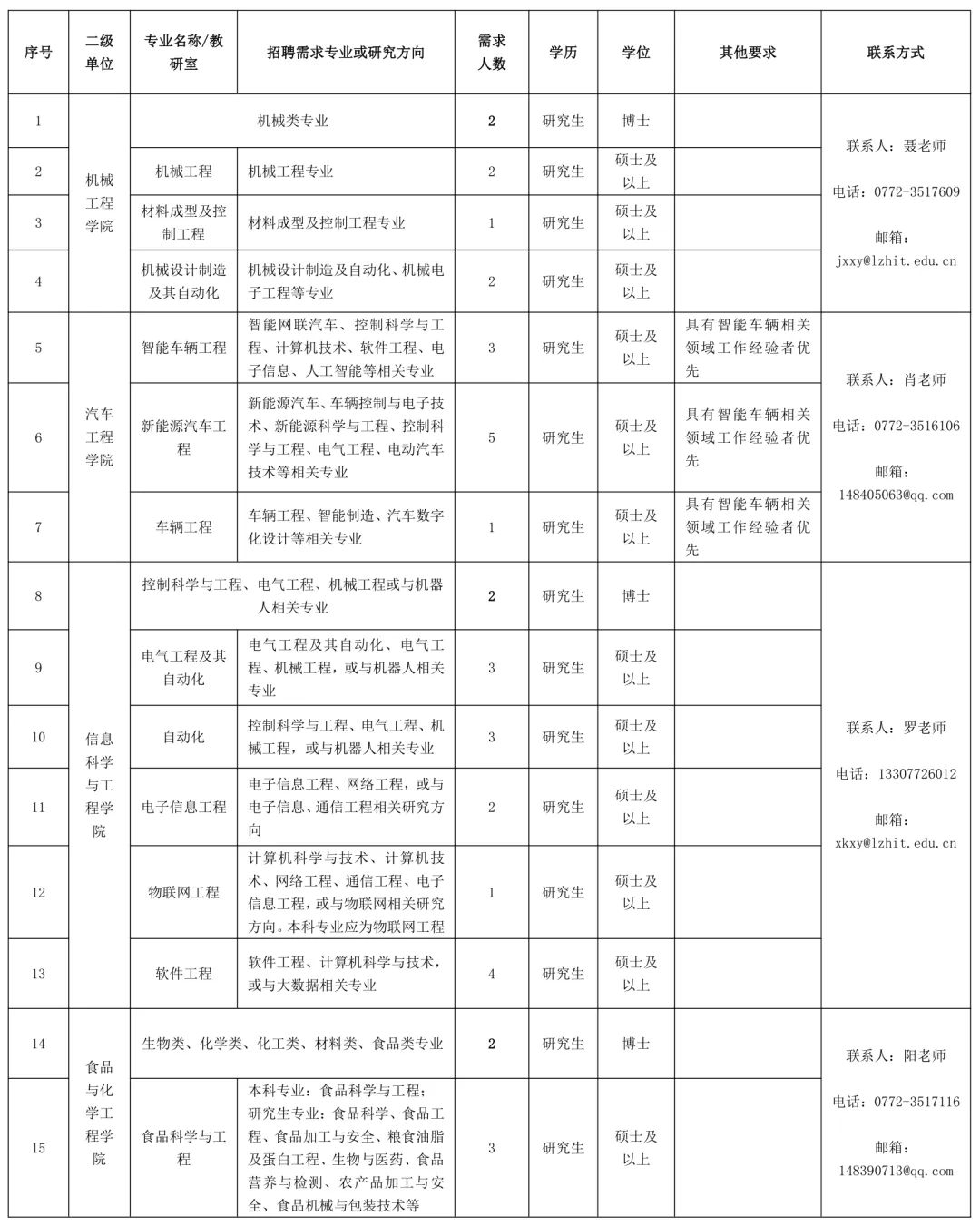 聯(lián)系地址:廣西柳州市魚峰區(qū)新柳大道99號(hào)柳州工學(xué)院人事處(科教樓1409辦公室)