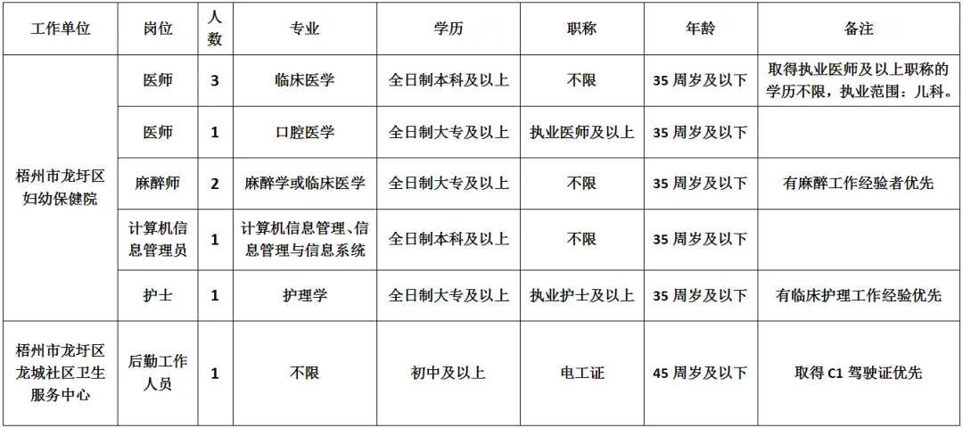 2025年梧州市龍圩區(qū)婦幼保健院第一次招聘9人公告