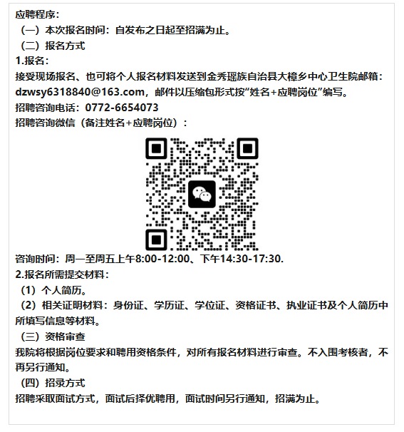 原文標(biāo)題:金秀瑤族自治縣大樟鄉(xiāng)中心衛(wèi)生院2025年公開(kāi)招聘人才公告