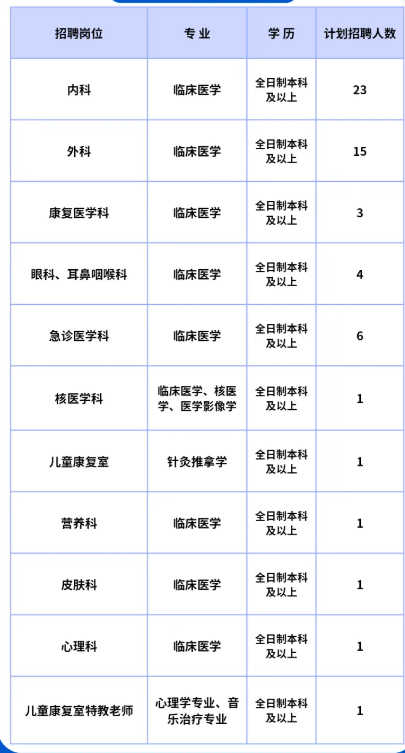 (三)急診醫(yī)學(xué)科、核醫(yī)學(xué)科、眼科、耳鼻咽喉科、康復(fù)醫(yī)學(xué)科等急需緊缺崗位的應(yīng)屆規(guī)培畢業(yè)生經(jīng)一個月試用期滿,考核合格者,與我院簽訂五年及以上勞動合同的醫(yī)院可給予10萬元獎勵并享受同級別的待遇。