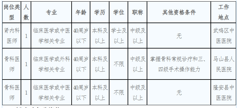 2.具備崗位所需的專業(yè)、職稱及執(zhí)業(yè)醫(yī)師資格;