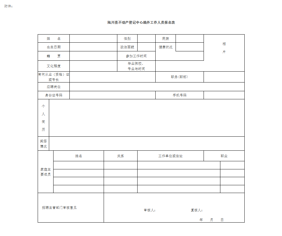 附件:《陸川縣不動(dòng)產(chǎn)登記中心編外工作人員報(bào)名表》