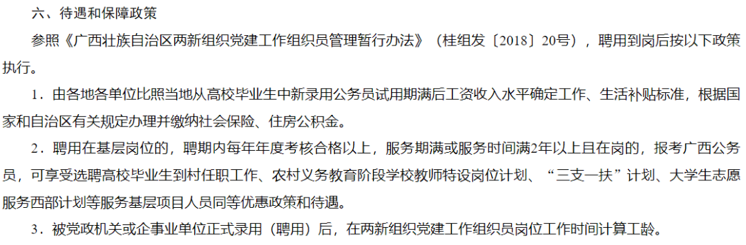 如果是符合條件的黨員朋友可要抓住這次機會了??,不僅“由各地各單位比照當(dāng)?shù)貜母咝.厴I(yè)生中新錄用公務(wù)員試用期滿后工資收入水平確定工作、生活補貼標(biāo)準(zhǔn),根據(jù)國家和自治區(qū)有關(guān)規(guī)定辦理并繳納社會保險、住房公積金。”服務(wù)期滿還參照三支一扶等服務(wù)基層項目人員同等優(yōu)惠政策和待遇,而且!這個考試只用筆試,不用面試,香,實在是太香了!