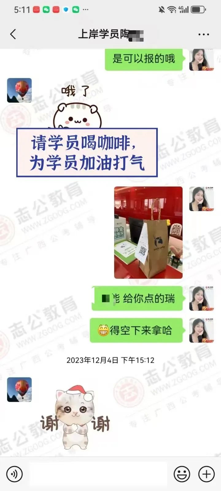 為他安排一杯暖心的咖啡,他在第二天也回請(qǐng)了我“帶有西大文化底蘊(yùn)的瑞幸”。期間,還主動(dòng)給我轉(zhuǎn)介紹了 3 個(gè)同學(xué)來報(bào)班!在這條逐夢(mèng)的道路上,我們不僅僅是師生,更是相互信任、相互支持的知心朋友。