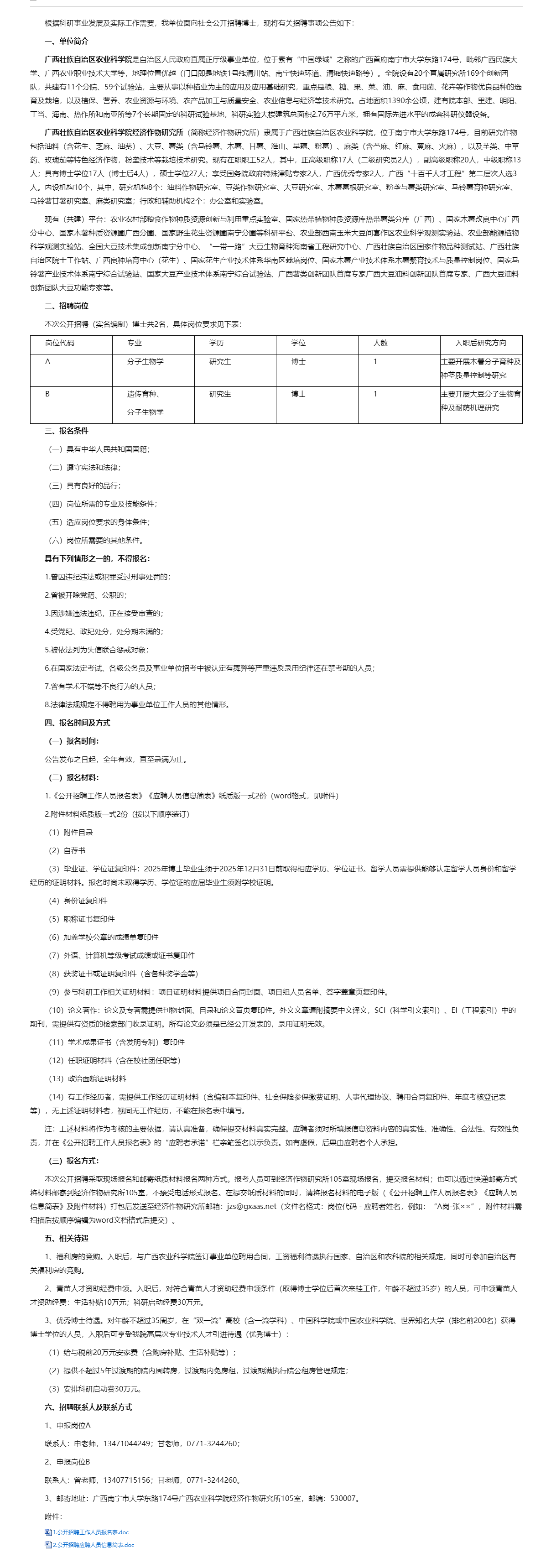 廣西農(nóng)業(yè)科學(xué)院經(jīng)濟(jì)作物研究所2025年博士公開招聘公告