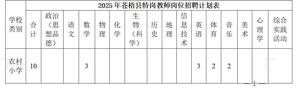 附件:2025年蒼梧縣特崗教師崗位計劃表