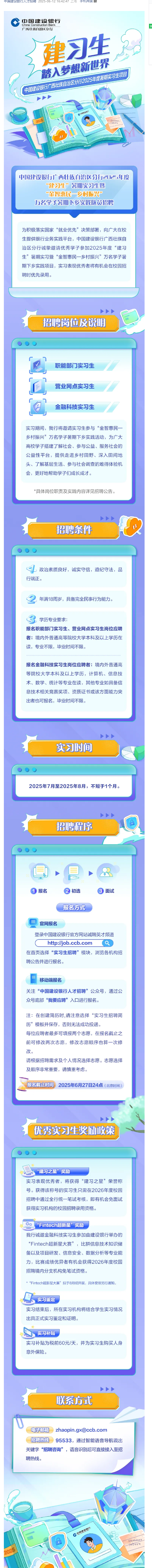 廣西 | 中國建設(shè)銀行廣西區(qū)分行2025年度暑期實(shí)習(xí)生招募