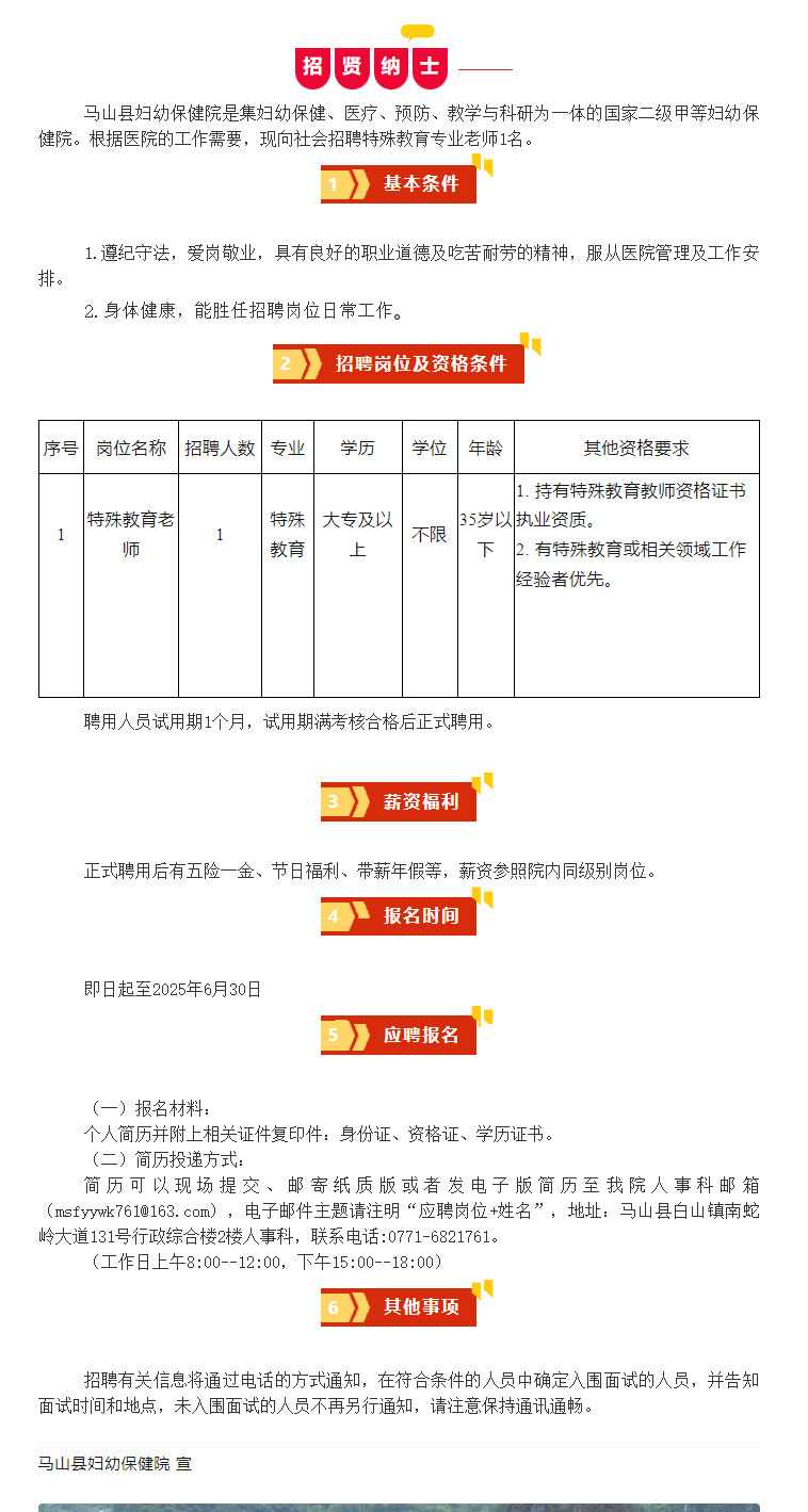 馬山縣婦幼保健院招聘特殊教育專(zhuān)業(yè)老師1人