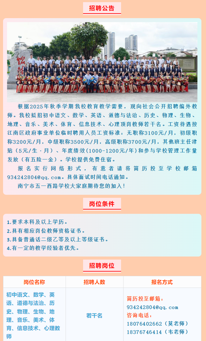 2025年南寧市五一西路學(xué)校招聘老師若干名
