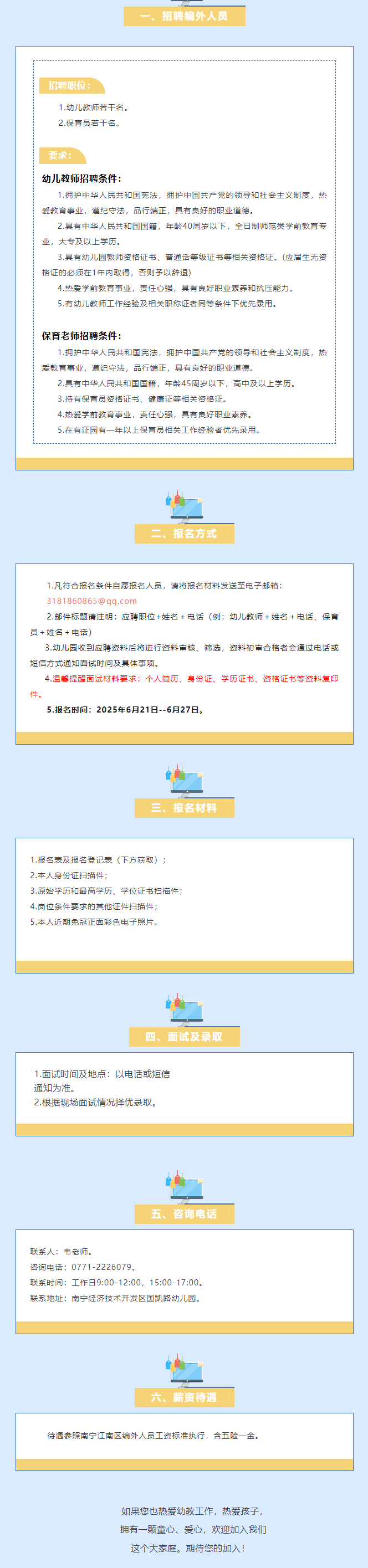 2025年南寧經(jīng)濟(jì)技術(shù)開(kāi)發(fā)區(qū)國(guó)凱路幼兒園招聘編外人員若干人
