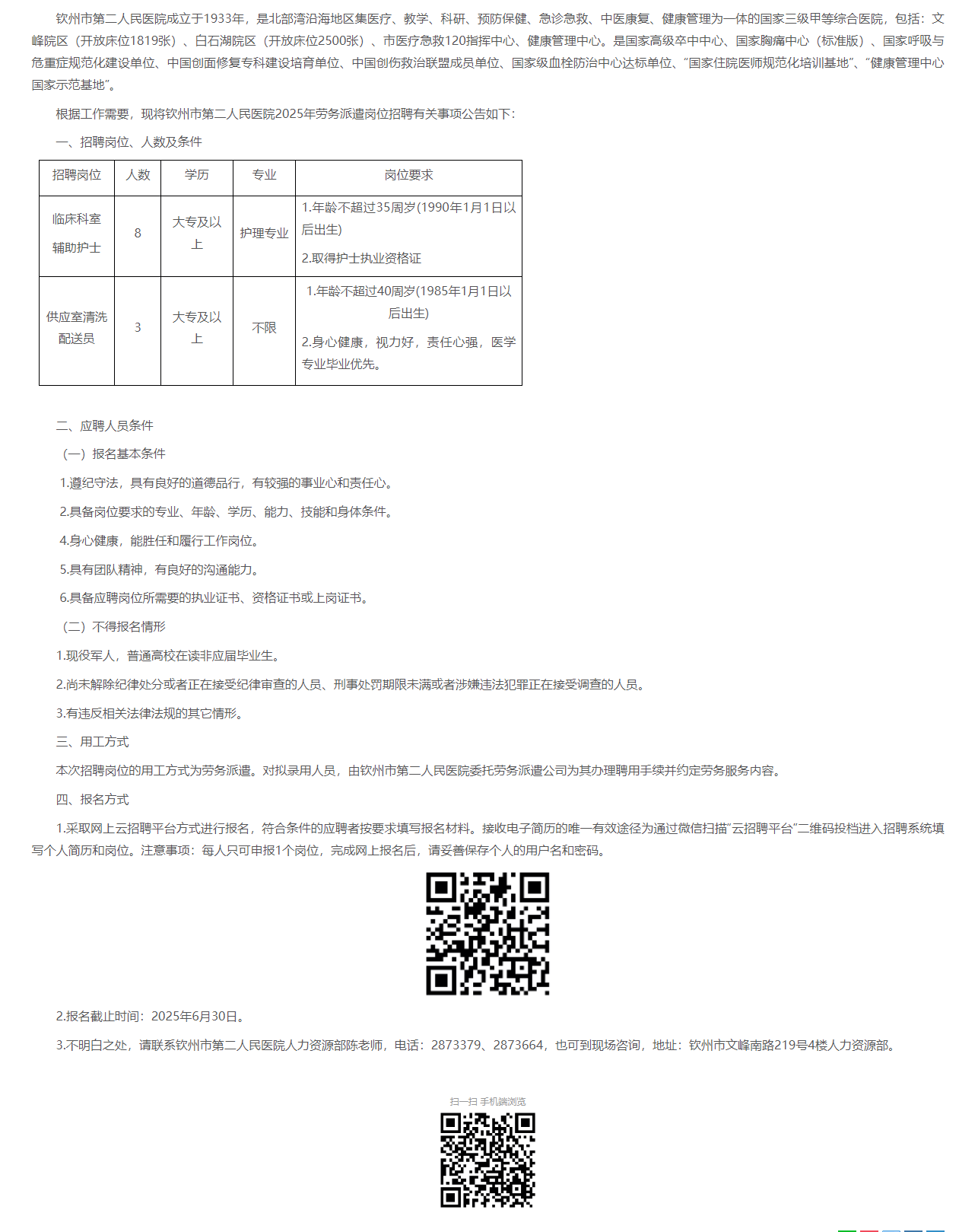 2025年欽州市第二人民醫(yī)院勞務派遣崗位人員招聘公告