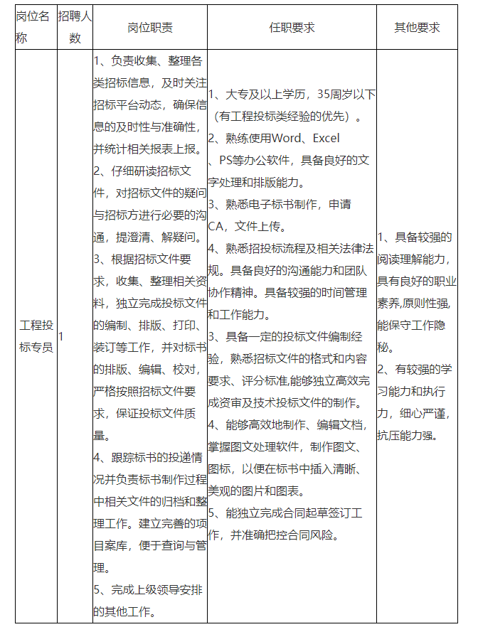 投標(biāo)崗位1人