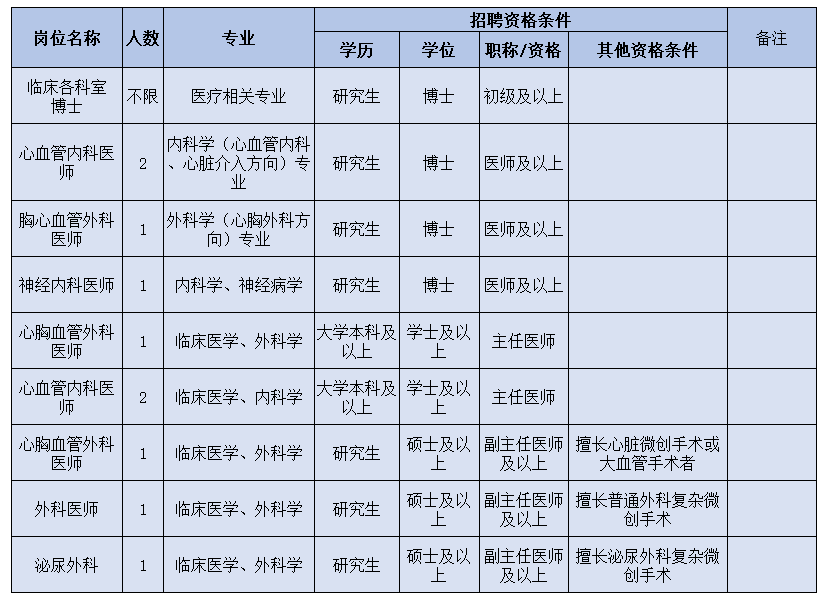 ③列入醫(yī)院人才引進(jìn)目錄或醫(yī)院根據(jù)專(zhuān)科發(fā)展需要的崗位人才,人才資格條件按特殊情況辦理,采用一人一議。