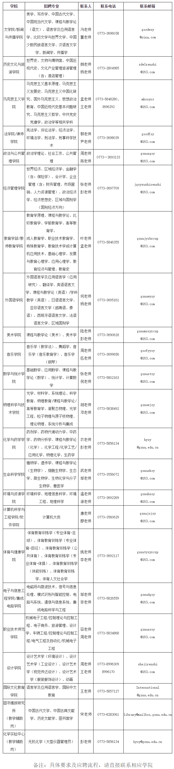 學(xué)校人事處聯(lián)系人:王老師、謝老師、鄧?yán)蠋?br /> 聯(lián)系電話:0773-3690080,0773-3635102