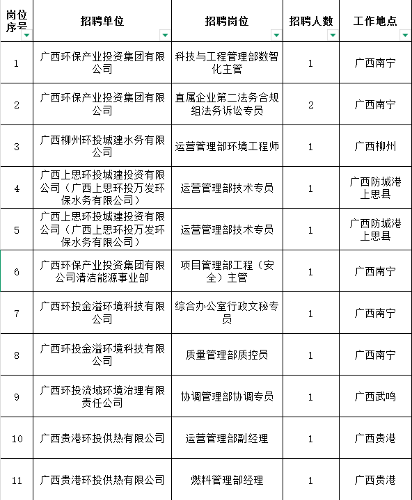 附件:廣西環(huán)保集團(tuán)2025年第三次公開招聘崗位表
