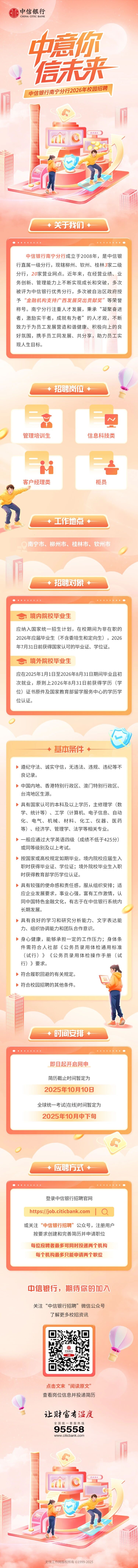 原文標(biāo)題:中信銀行南寧分行2026年校園招聘