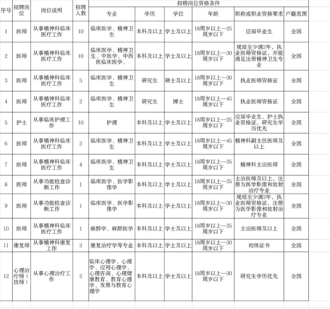 招聘崗位表