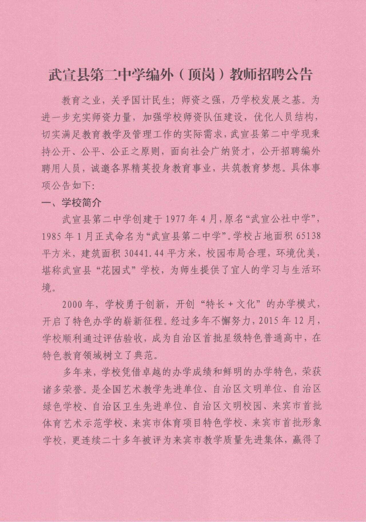 原文標題:武宣縣第二中學編外(頂崗)教師招聘公告