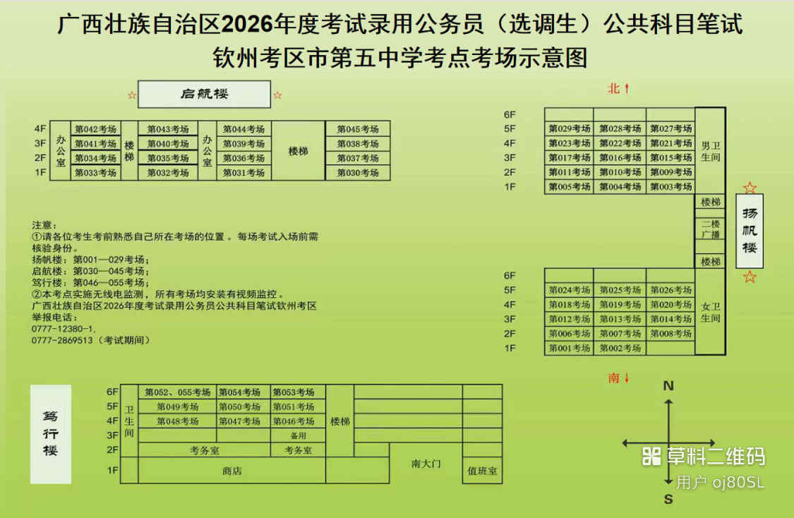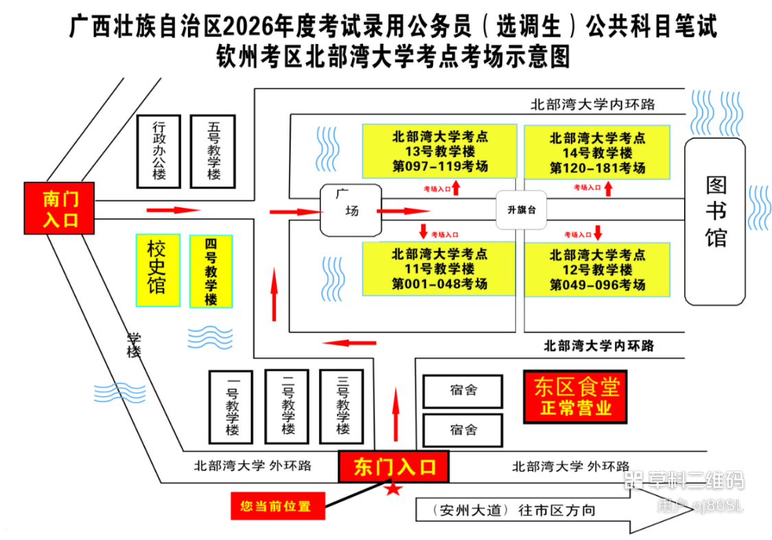 欽州考區(qū)共設(shè)三個(gè)考點(diǎn),分別為北部灣大學(xué)考點(diǎn)、北部灣職業(yè)技術(shù)學(xué)校考點(diǎn)、欽州市第五中學(xué)考點(diǎn)。(考點(diǎn)地址和具體考場安排請(qǐng)掃附后的二維碼查看)