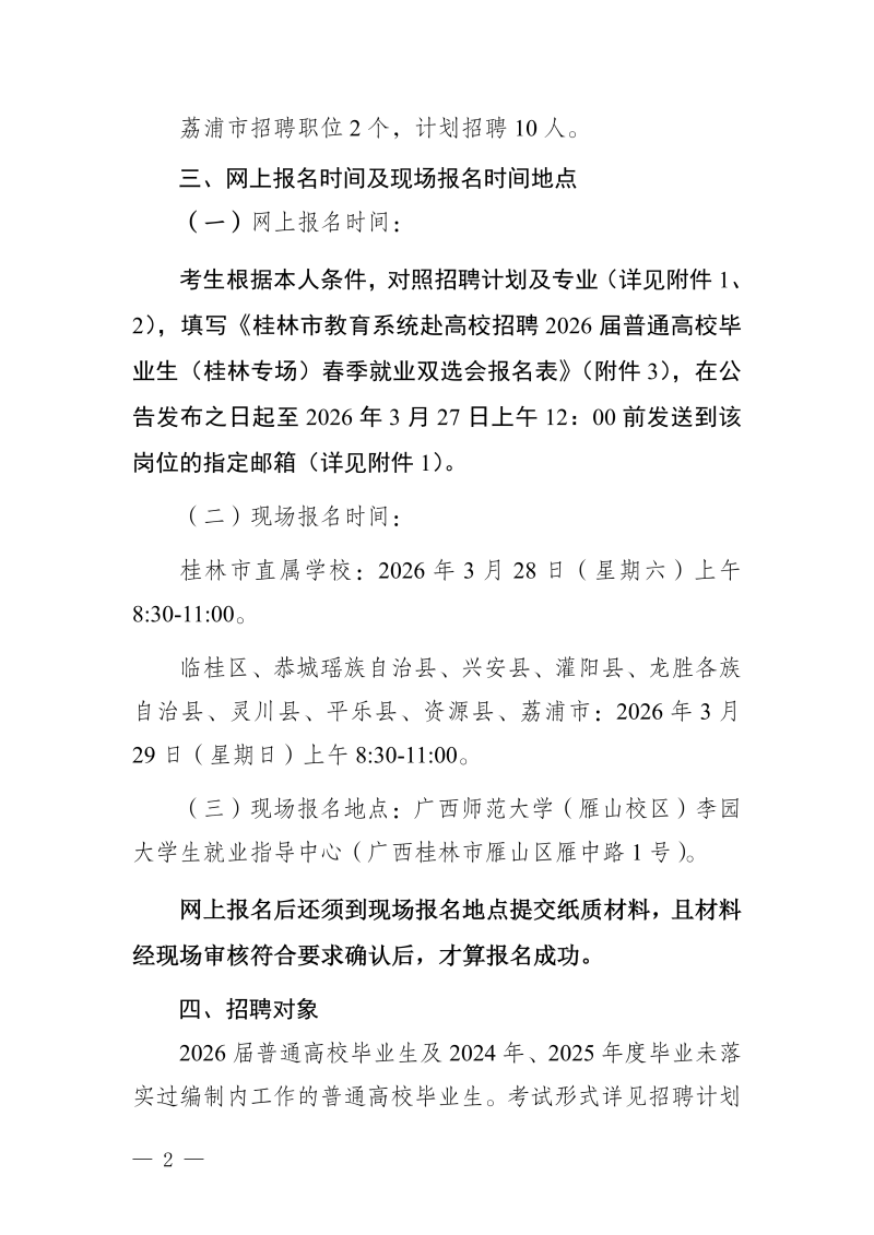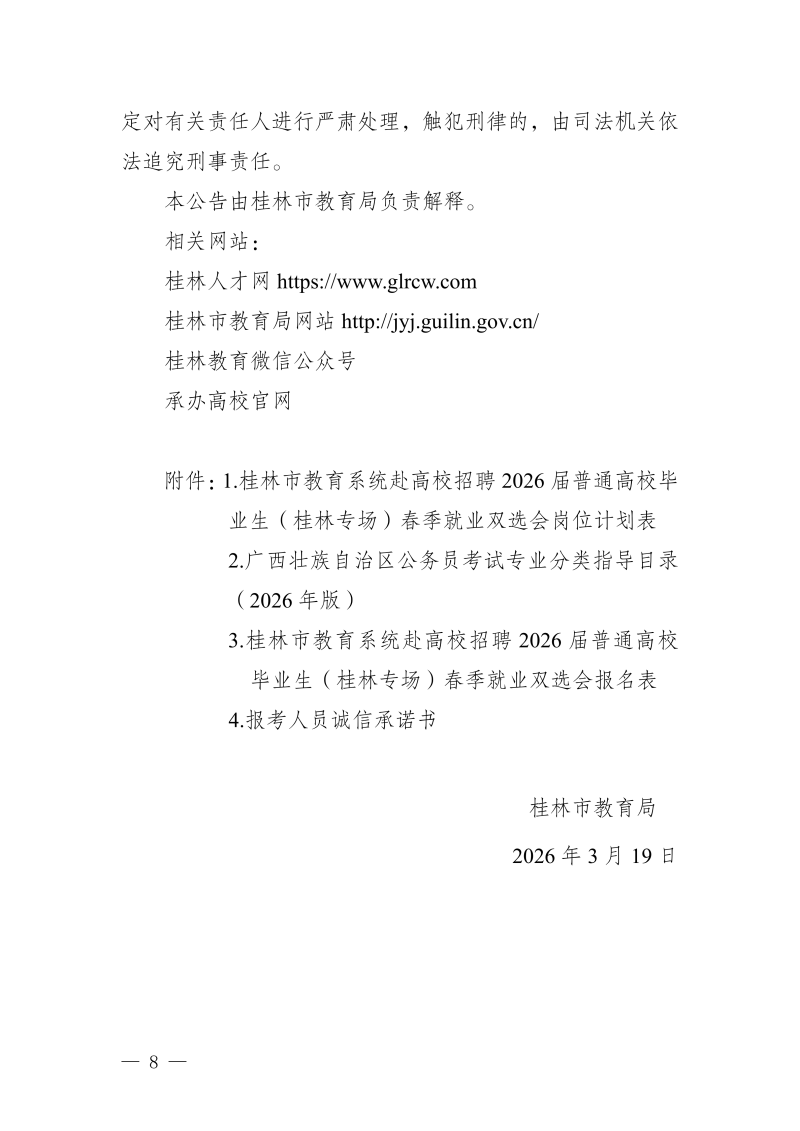 2026年桂林市教育系統(tǒng)赴高校招聘普通高校畢業(yè)生(桂林專場)春季就業(yè)雙選會招聘426人