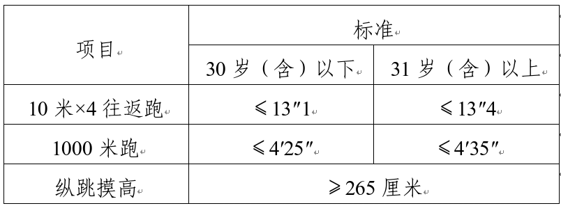 (一)體能測評前,考生應(yīng)了解體能測評的項目、標(biāo)準(zhǔn)和注意事項,結(jié)合本人身體狀況,根據(jù)個人意愿決定是否參加體能測評。確定參加體能測評的考生需現(xiàn)場簽署《自愿參加體能測評承諾書》。
